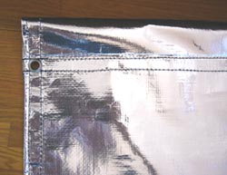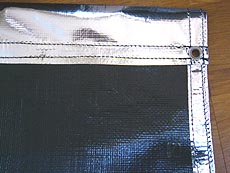 (シート状のみ) 四方と四辺の中央、30-50cm毎にハトメ(穴直径10mm)付きます。 |